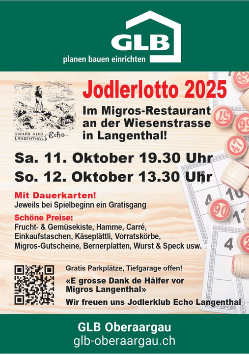Samstag 11. Oktober 2025 Lotto im Migros Restaurant Langenthal