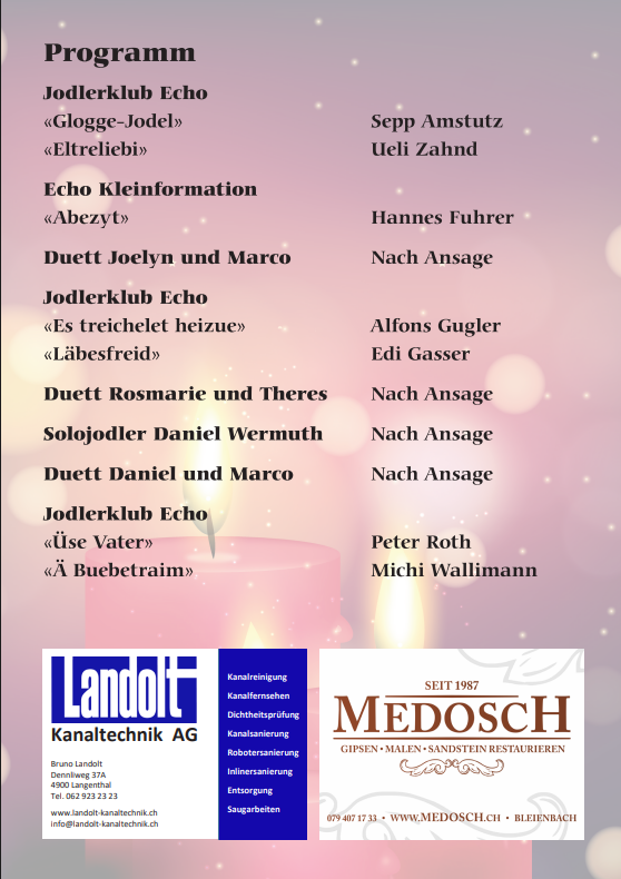 Freitag 12. Dezember 2025 Gastauftritt Konzert Jodlerklub Heimat Alchenstorf