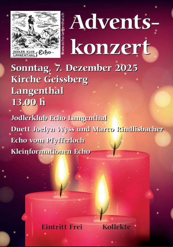 Sonntag 07. Dezember 2025 Adventskonzert ref. Kirche Langenthal 13.00 Uhr